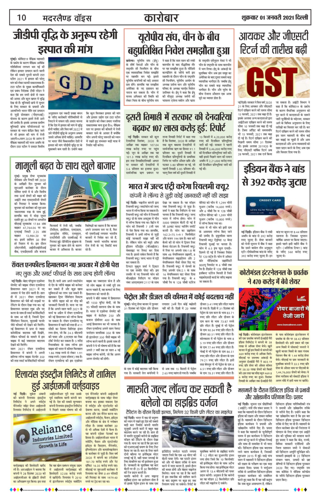 Home ई-पेपर 1 जनवरी 2021 ई-पेपर 1 जनवरी 2021 By News Desk - January 1, 2021 8655 0 Download Download Page Download Right Page Open 1 2-3 4-5 6-7 8-9 10-11 12 RELATED ARTICLESMORE FROM AUTHOR 30 दिसम्बर 2022 05 दिसम्बर 2022 04 दिसम्बर 2022 28 अक्तूबर 2022 27 अक्तूबर 2022 LEAVE A REPLY Cancel reply Please enter your comment! Please enter your name here You have entered an incorrect email address! Please enter your email address here Save my name, email, and website in this browser for the next time I comment.
